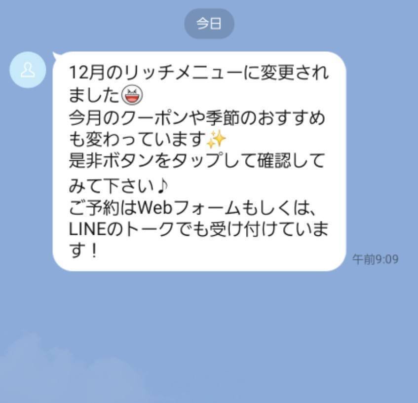 リッチメニューを変更と同時、メッセージを送ることをおすすめします!