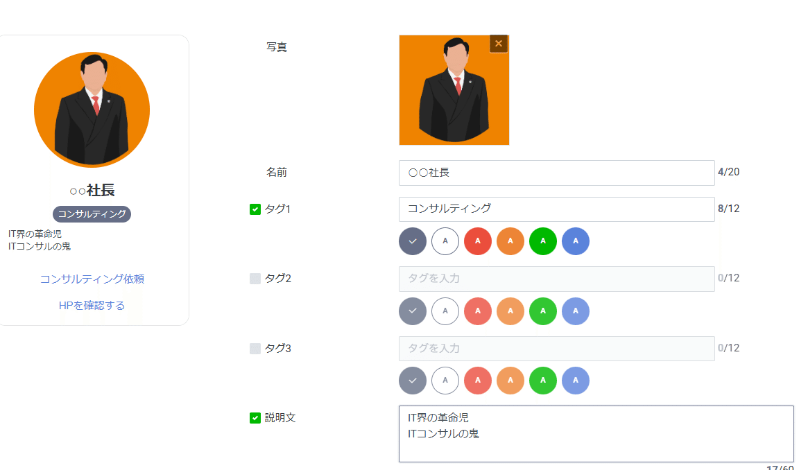 タグの設定数も多く、スタッフの紹介に向いています!