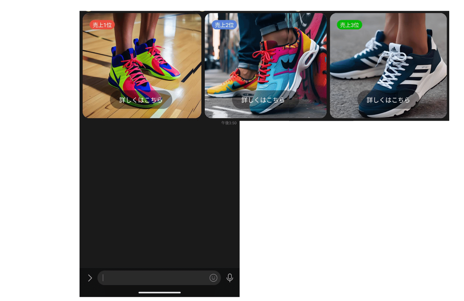 一般的なカードタイプメッセージの使い方ですが、比較を意識するとすごくユーザーの目を引く配信になります!