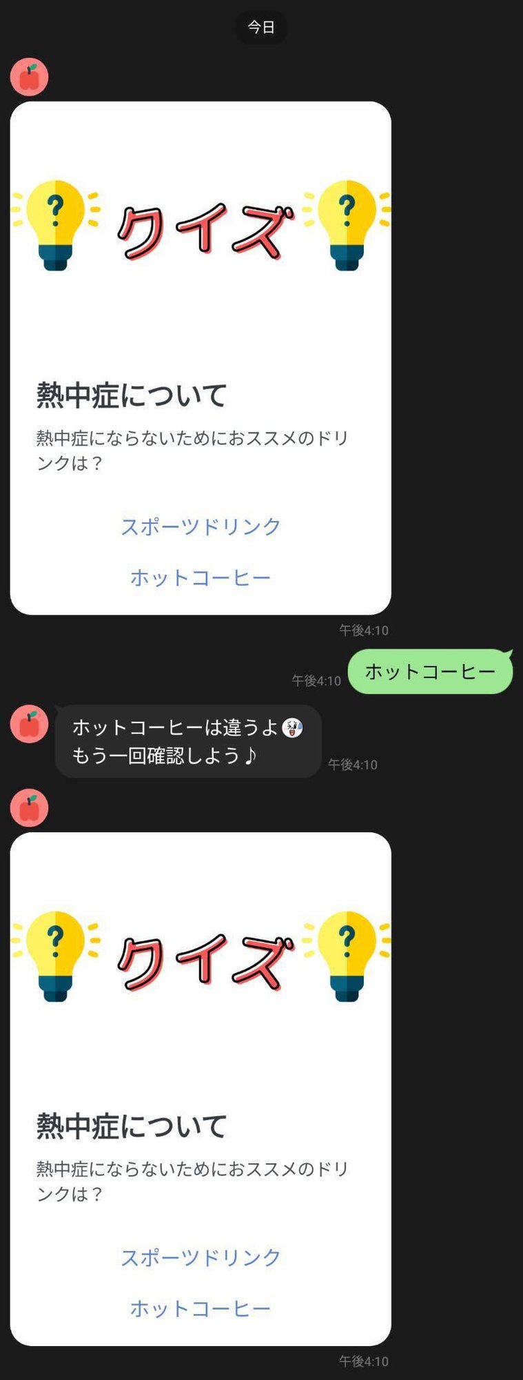 このクイズ型の配信は、タップするとすぐに返答が返ってくる仕様になっています。